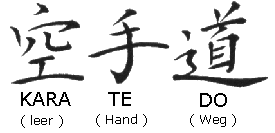 Mitentscheidend für die Wandlung war die Aussprache. Die Silbe To im Wort Tode kann auch als Kara ausgesprochen werden und De hat die gleiche Bedeutung wie Te. Aus Tode entstand das WortKarate. Anfangs hatte das Schriftzeichen Kara die Bedeutung China, wurde jedoch aus mehreren Gründen in Leer geändert. Zum einen war es der philosophisch-moralische Sinngehalt der Silbe Leer, zum anderen sollten die Assoziationen zu China vermieden werden, wegen des japanischen Nationalismus jener Zeit. Und nicht zuletzt sollte der Aspekt der Waffenlosigkeit hervorgehoben werden. |